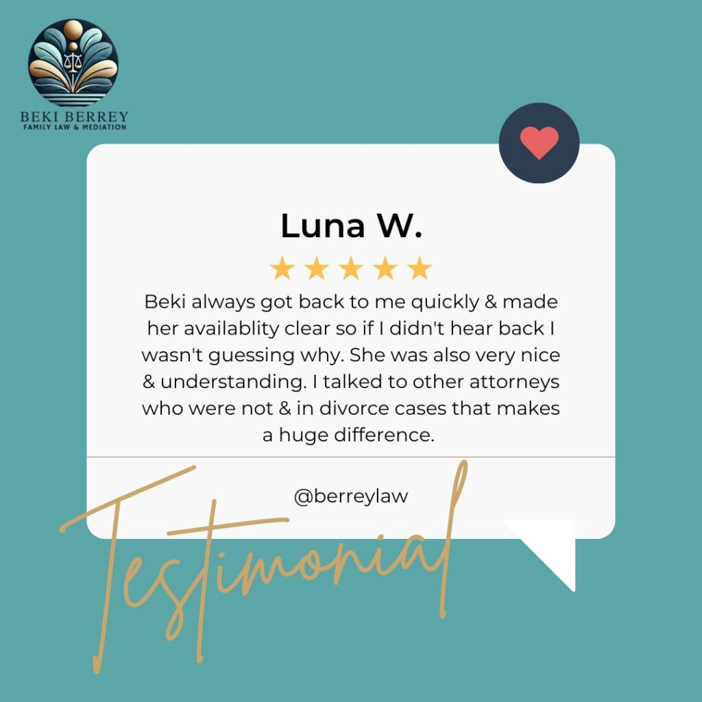 *Notice: The client testimonials above are not to be construed as a guarantee or prediction of a similar result in any future case undertaken by Beki Berrey. Each case result depends upon a variety of factors unique to each case and client.
